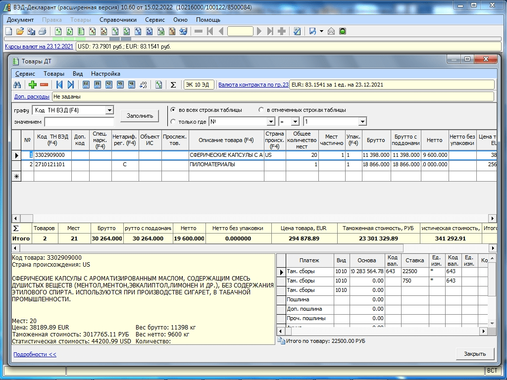 • имеет гибкую систему настроек, позволяющих корректировать заполнение документов и расчеты таможенных платежей в зависимости от особенностей оформления.